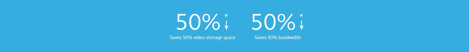 Los vídeos H.265 requieren solo el 50% del espacio de almacenamiento requerido para los vídeos tradicionales H.264 a la misma velocidad de píxeles y datos, lo que le permite ahorrar la mitad de espacio de almacenamiento.