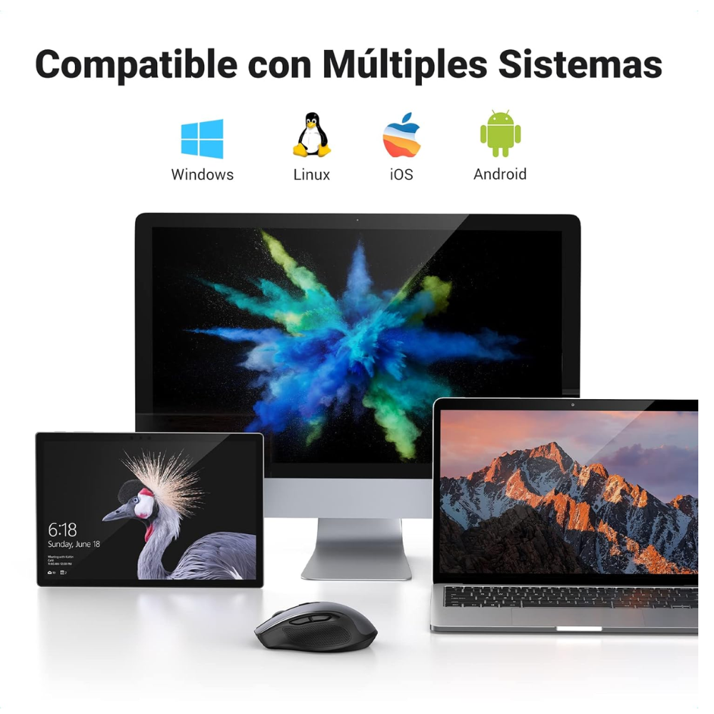 - Amplia Compatiblidad: Este ratón inalámbrico de 2.4GHz es compatible con Windows 11/10/8.1/7, macOS, Chrome OS y Linux. Plug and play, no hace falta instar driver, simplemente conecta el receptor USB a portátil u ordenador, podrá usarlo de inmediato. A diferencia de los ratones habituales del mercado, incluso en el sistema macOS, puede utilizar los botones laterales de este ratón para realizar operaciones rápidas