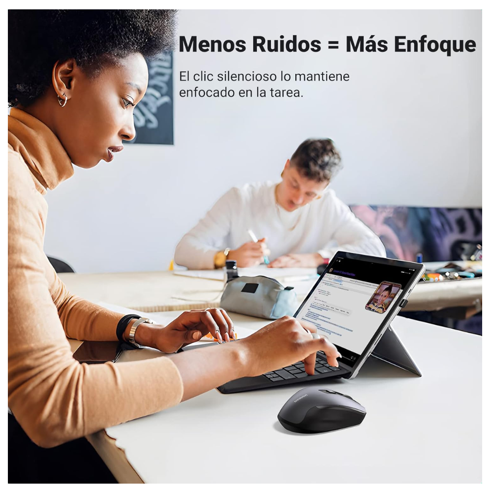 - Clic Completamente Silencioso: El mouse silencioso usa los botones de silencio para reducir el ruido a 40dB, que es un 40% más bajo que el sonido de ratón normal. Con almohadillas PTFE de alta calidad, no se generará ningún ruido de fricción incluso cuando el ratón se mueva sobre una superficie dura. Ya sea en casa, en oficina o en biblioteca, puede trabajar sin molestar a nadie