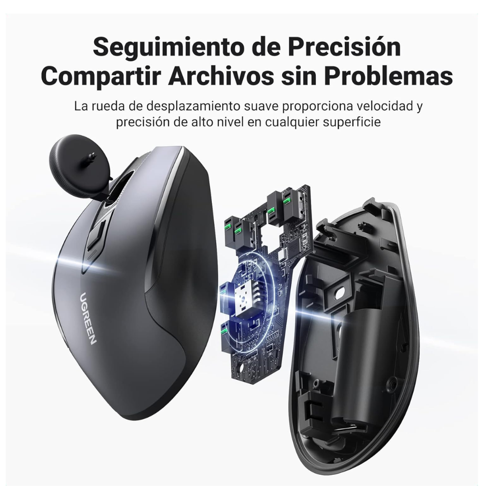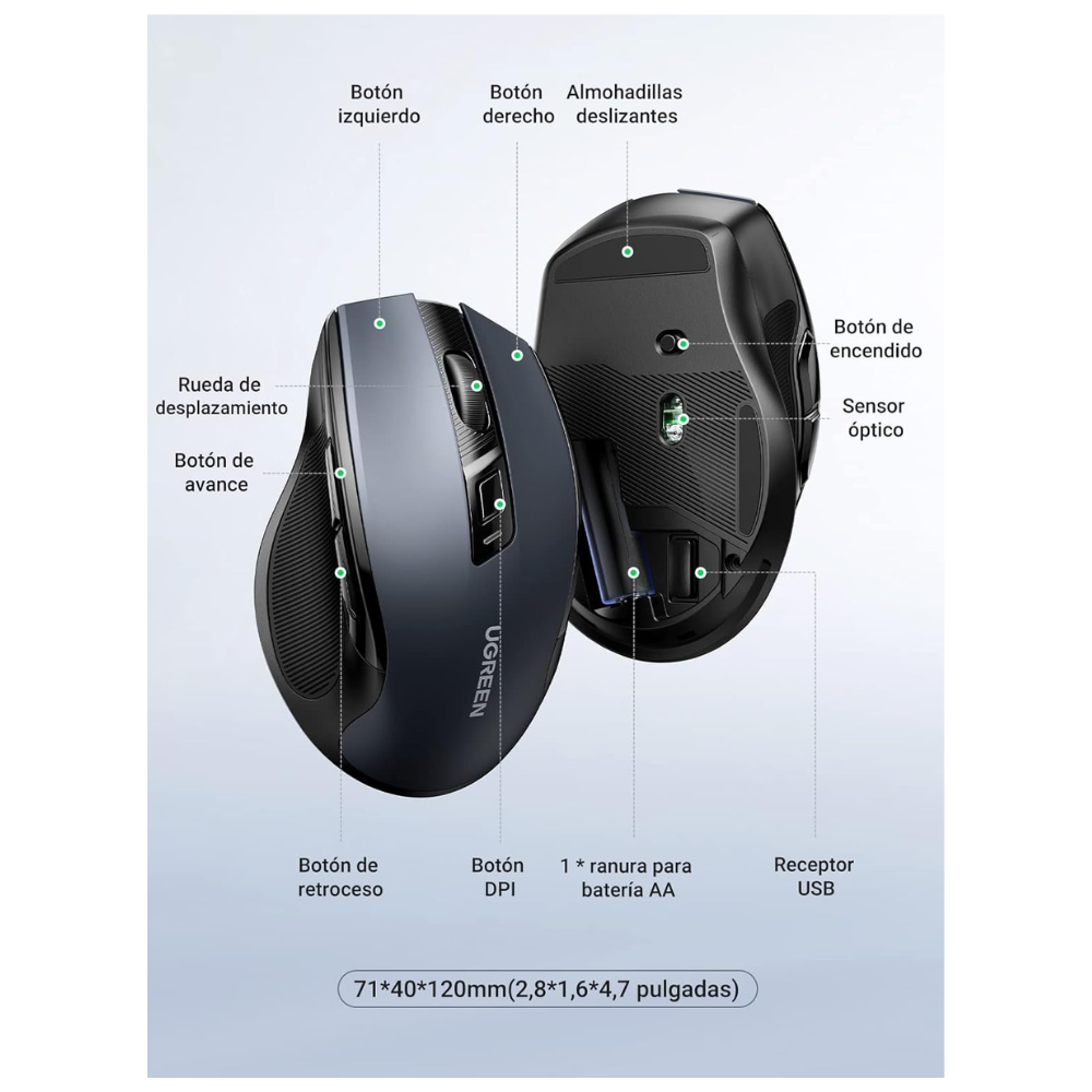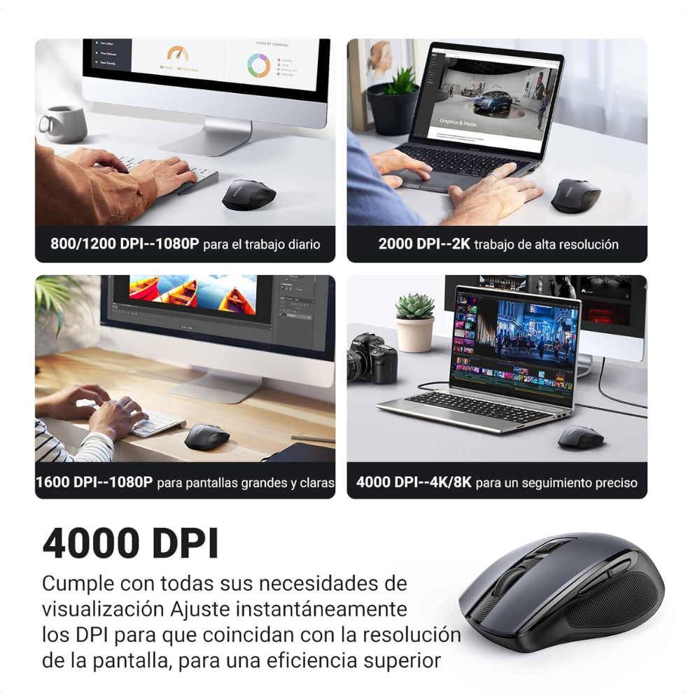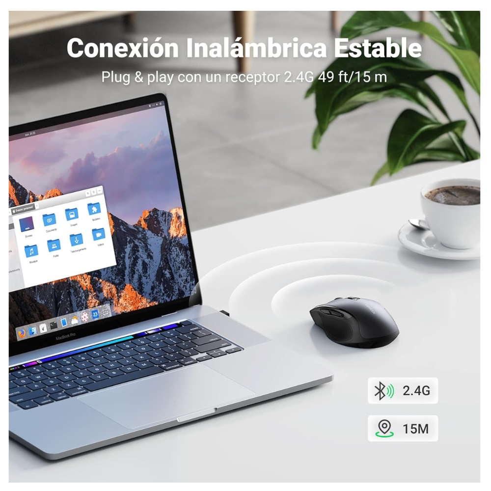 UGREEN Mouse Inalámbrico 2.4 GHz con Receptor USB, 15M de Conexión, Ratón Ergonómico de 6 Botones, hasta 4K dpi, Compatible con PC, Portátil, Macbook, Windows 11 10, macOS, Linux