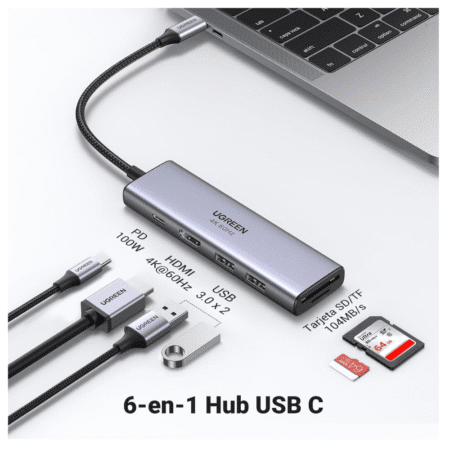 Comprar ahoraUGREEN USB C Hub, 5 en 1 Adaptador USB C Multipuerto Aluminio a 4K 30Hz HDMI, 1 USB 3.0 y 2 USB 2.0, PD Carga Compatible con MacBook